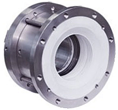 - Опорный фланец и резиновое кольцо, уплотняющее вал защищены от воздействия уплотняемой среды оболочками из фторопласта.